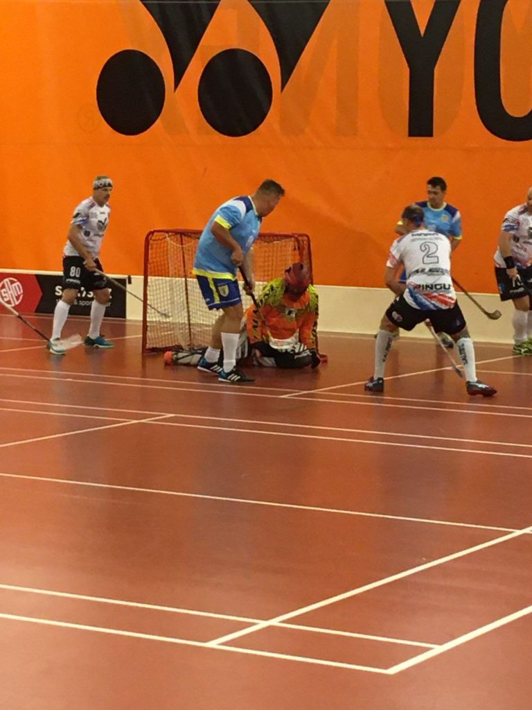 Na nasledujúci deň o 12:45 nás čakal posledný zápas v skupine, v ktorom sme nastúpili proti českému SKP FALKONI Holešov. Súperovi sme oplatili minuloročnú prehru a zápas sme po výbornom výkone vyhrali 5 : 3 po polčase 2 : 1. Výborne sme vstúpili do zápasu a dostali sme sa do dvojgólového vedenia zásluhou Ľuba Rusinka a Mikiho Lazara. Súper sa ale nevzdal a do prestávky strelili Dohnalom kontaktný gól a po prestávke zrovnal skóre gólom Větříška. Následne ale prišli chvíle Mareka Fediča, keď najprv v jedinej presilovke zápasu prihral na gól Marekovi Bajtošovi, aby o chvíľu neskôr sám gólom zvýšil skóre na 4 : 2. Větříšek svojim druhým gólom v zápase stihol ešte streliť kontaktný gól, Tomi Gajdoš ale gólom definitívne potvrdil naše víťazstvo. To je o to cennejšie, že náš súper s prakticky totožným kádrom obsadil v lete tohto roku 3.miesto na Olympiáde veteránov vo florbale v talianskom Turíne, na ktorom sa zúčastňujú mužstvá z celého sveta.